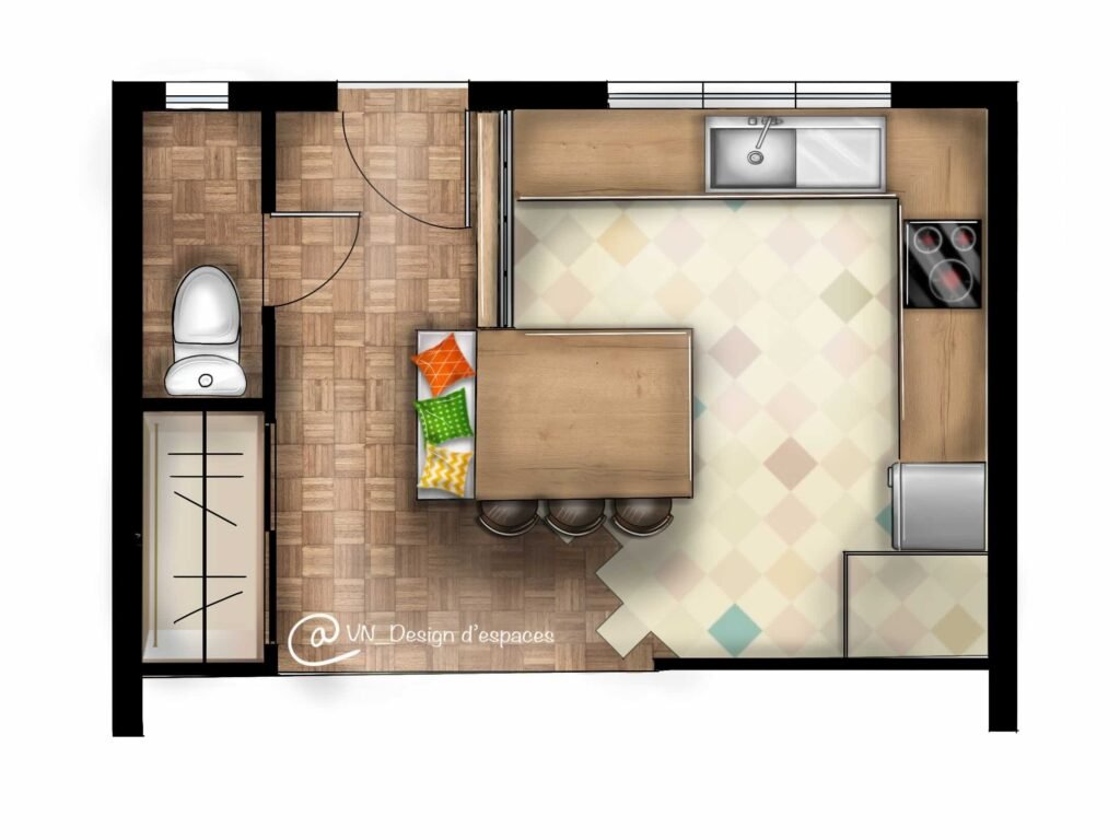Rénovation d'un appartement type 3 : entrée, cuisine, salon et chambre